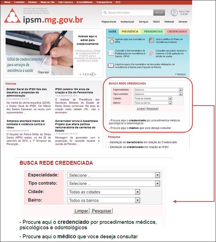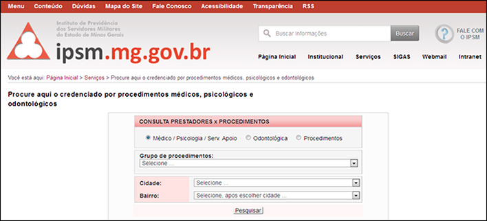 O Instituto de Previdência dos Servidores Militares do Estado de Minas Gerais (IPSM) oferece em seu site, informações sobre clínicas, hospitais e farmácias da rede credenciada e contratada, com endereços e telefones. Além disso, no portal também é possível consultar procedimentos médicos, psicológicos, odontológicos e a relação dos profissionais da rede contratada (corpo clínico), com dados sobre os locais de atendimento.